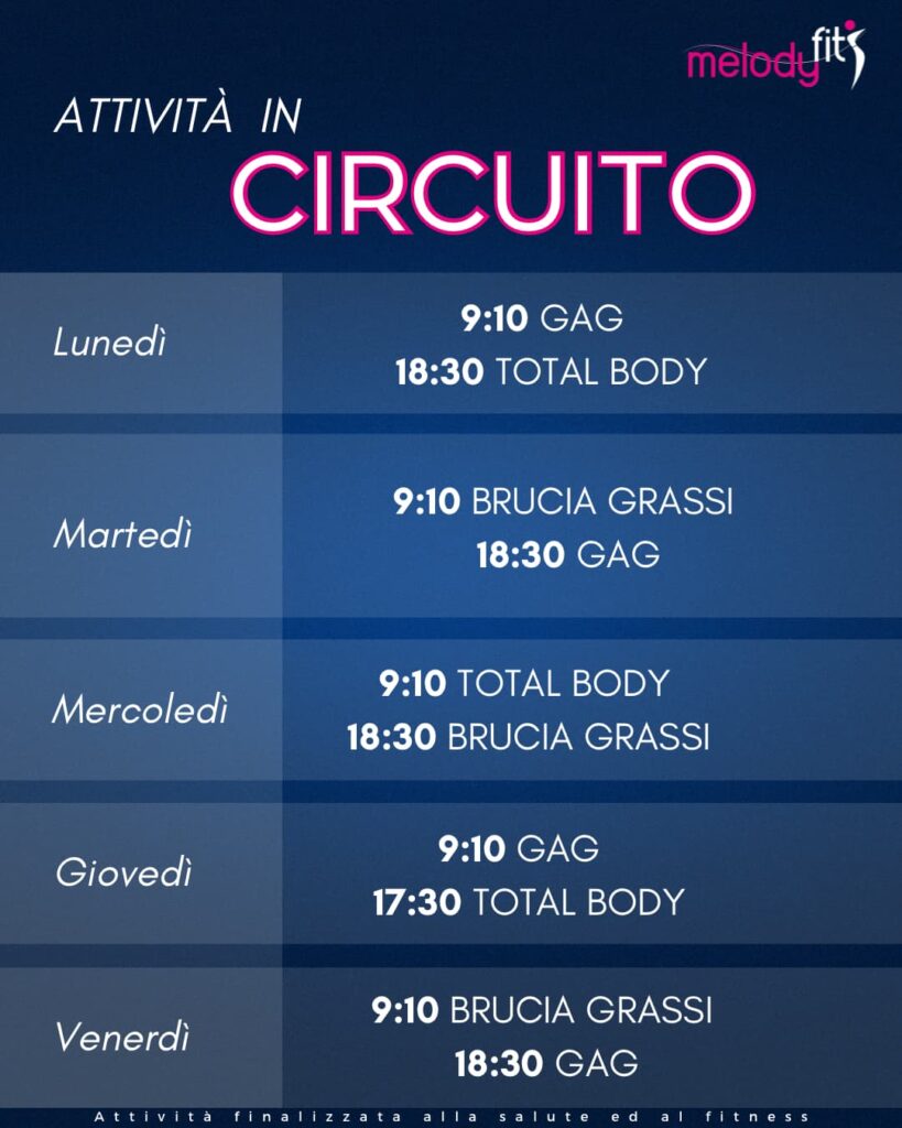MelodyFit, la palestra femminile dedicata al benessere e alla forma fisica, presenta i nuovi orari per il corso Attività in Circuito, un programma dinamico e versatile che combina allenamenti mirati a migliorare forza, tono muscolare e resistenza cardiovascolare.